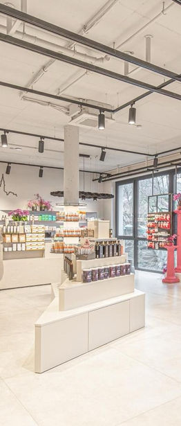 Natürliche Farben und Materialien schaffen Ruhe und Vertrauen, unterstützt durch akustische Maßnahmen für ein leises, angenehmes Einkaufserlebnis. Die Wegeführung ist klar und intuitiv, sodass Kunden schnell Orientierung finden.